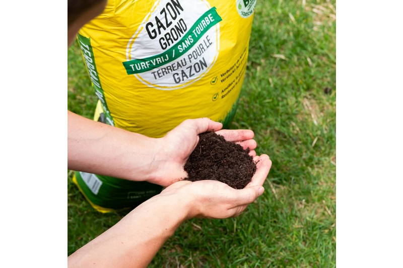 Gazon-grond is een bodemverbeteraar, verrijkt met een organische meststof die rijk is aan fosfaat en kalium. Gazon-grond brengt organisch materiaal en zuurstof in de grond waar de graswortels van profiteren. Bij aanleg of herstel van het gazon ontstaat al snel een dichte en sterke grasmat door de toevoeging van fosfaat. Het gebruik van Gazon-grond na de laatste maaibeurt maakt het gazon sterk voor de winter. Kalium versterkt het gras waardoor het beter bestand is tegen vorst. De luchtige structuur van Gazon-grond helpt mos-en viltvorming te voorkomen.