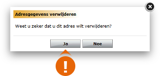 Klik op Ja om uw adres definitief te verwijderen. Daarna verschijnt er een nieuwe melding: